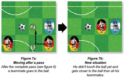 When you kick the ball, 1 player can move 2 steps towards the ball.