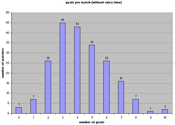 Here you see how many goals were scored in the 25 minutes per match, so without counting 'golden goals' in the eventually extra time of 10 minutes maximum.